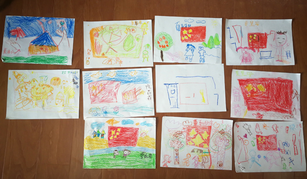 本次支教的主题契合即将到来的国庆,研究生们以“国庆”为主题,认真在讲台上做作画示范,努力引导孩子们了解国旗的形状色彩,并尝试引导孩子们添加各种材质丰富画面感,启发并挖掘他们的想象力与动手操作的能力,体验自由创作的乐趣。课堂上,小朋友们认真听讲并积极动手绘画创作。欢声笑语的教学过程中,我们支教的研究生同学们感受到了孩子们对绘画的无比热爱,尤其是看到孩子们手拿作品展示的时候,脸上写满了自信和成就感。