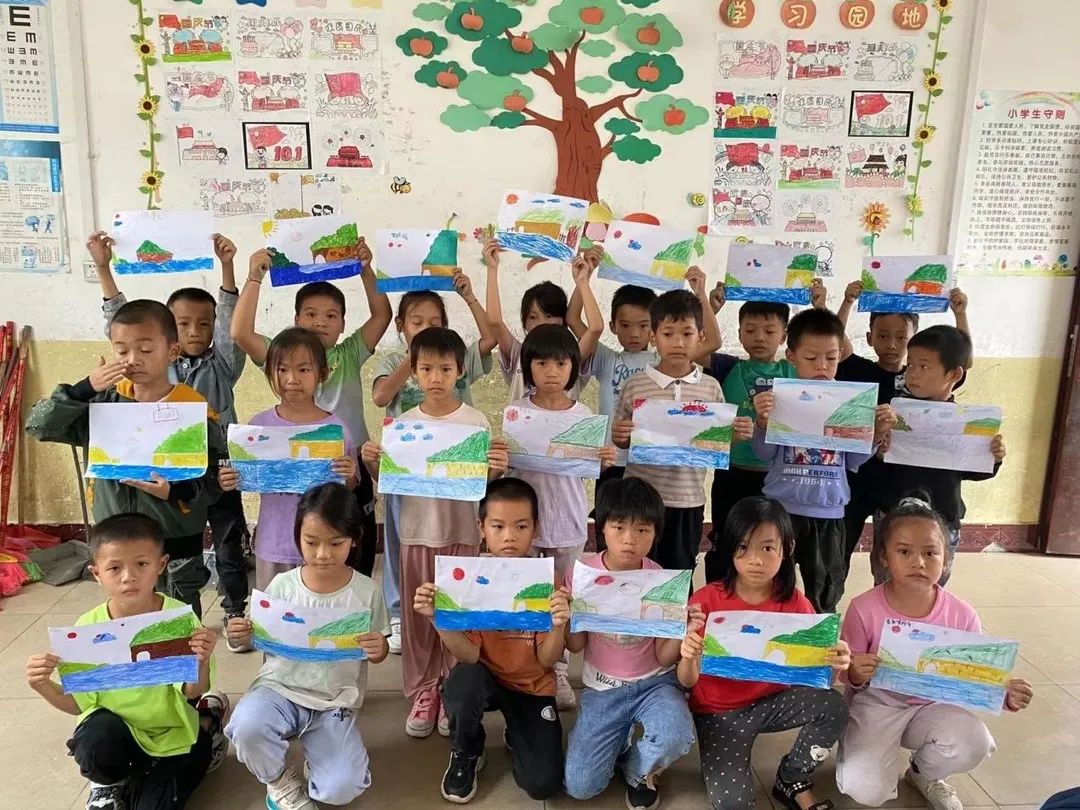 10月10日,美术学院“云苗计划”艺术支教服务队上林县塘红乡那君小学的小朋友们带来了一堂生动有趣的美术课,本次课程主要由学院本科生第三党支部学生党员孙雪、廖莉宜和入党积极分子胡先航、张文筱、陈璨共同建立授课小组,胡先航担任课程主讲人。