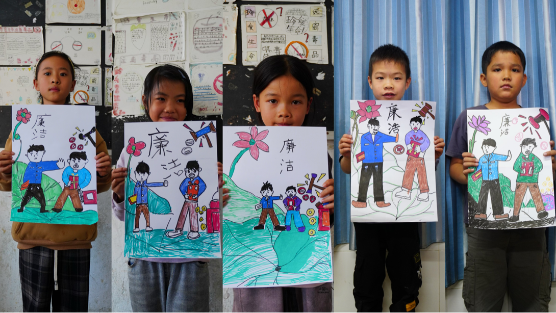 此次活动,我们依旧采用以往的“画展启明星”和“大手拉小手”经典环节。在“画展启明星”活动中,团委的志愿者们以专业的视角,为孩子们解读画作背后的故事与深意,引导他们从不同的角度欣赏艺术之美,激发他们的艺术兴趣和创作灵感。在“大手拉小手”活动中,本科生第三党支部的党员们与孩子们共同创作以“廉洁”为主题的画作。他们用五颜六色的画笔描绘代表廉洁的莲花,勾勒敲碎腐败的“正义之锤”,每一笔每一划都凝聚着对廉洁美德的向往与追求。