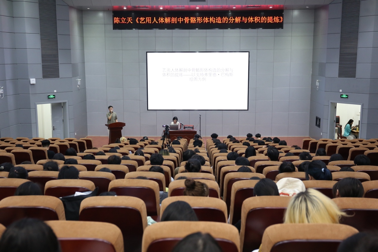 10月18日晚上20:00,由必威西汉姆联官网美术学院主办,美术学院基础部承办的“2023年度绘画人体结构•解剖教学专题工作坊”学术讲座活动于相思湖校区4101顺利进行。本次讲座的主讲人为必威西汉姆联官网美术学院的陈立天老师,讲座内容是《艺用人体解剖中骨骼形体构造的分解与体积的提炼——以戈特弗里德•巴梅斯绘图为例》。美术学院基础部授课教师及学生到场参加,讲座由美术学院韦骍老师主持。
