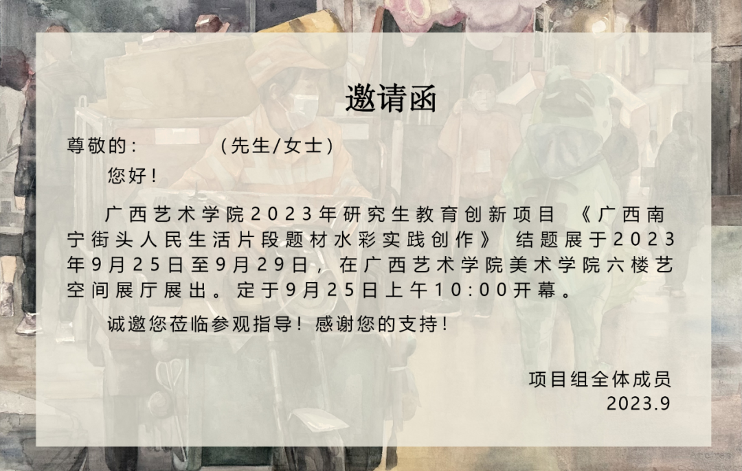【美院展讯】必威西汉姆联官网2023年度研究生创新项目《广西南宁街头人民生活片段题材水彩实践创作》结题展