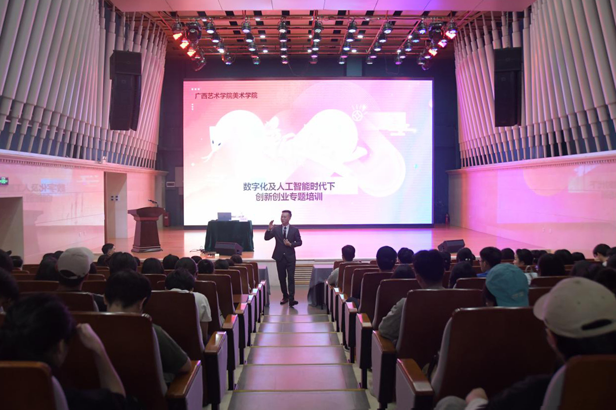 郑素勇以“新起点·迈向未来——数字化及人工智能时代下创新创业新机遇”为主题,深入剖析了当前数字化与人工智能时代背景下,美术专业毕业生所面临的创新创业环境。他结合美术专业学生的专业特点和独特优势,详细解读了国家及地方的创新创业政策,强调了数字化与AI技术为市场带来的无限机遇。