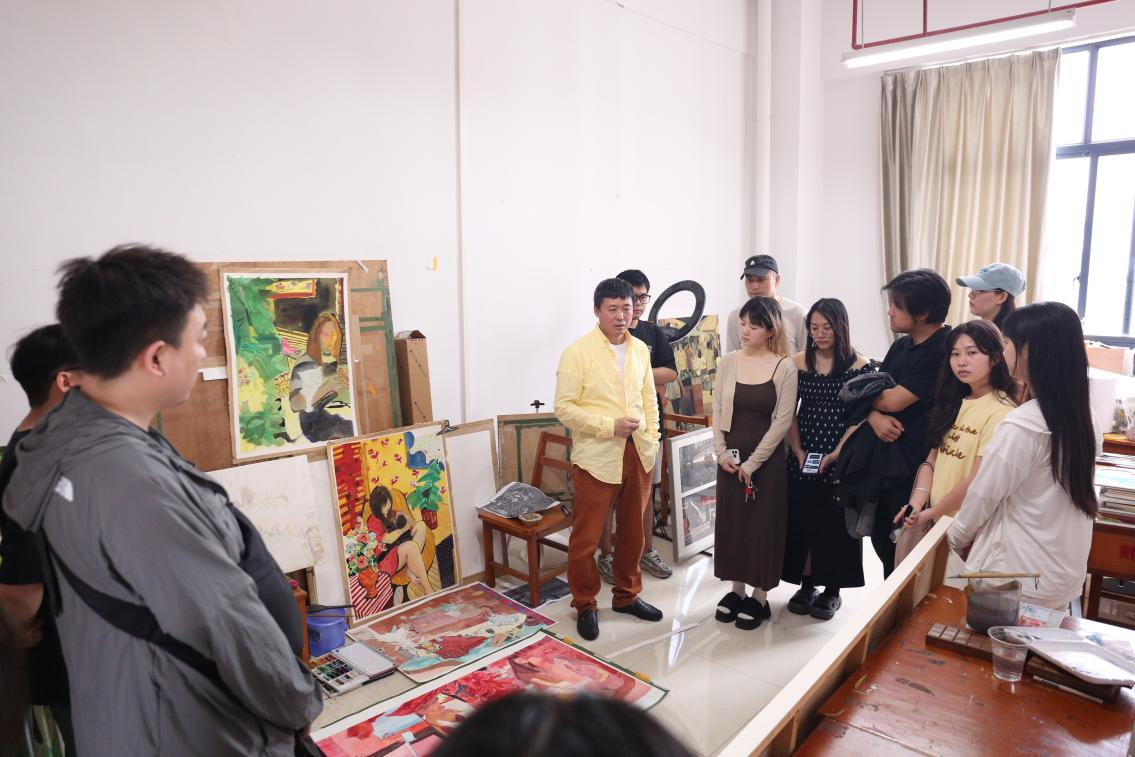 教学示范活动圆满结束后,孟宪德教授来到美术学院水彩画系研究生教室交流指导,孟教授不仅对同学们的创作作品进行了专业细致的点评指导,而且就水彩画创作的核心理念与技法运用等关键问题,与在场师生展开了深入探讨,令在场师生深受启发。
